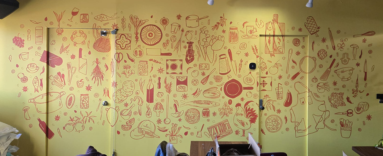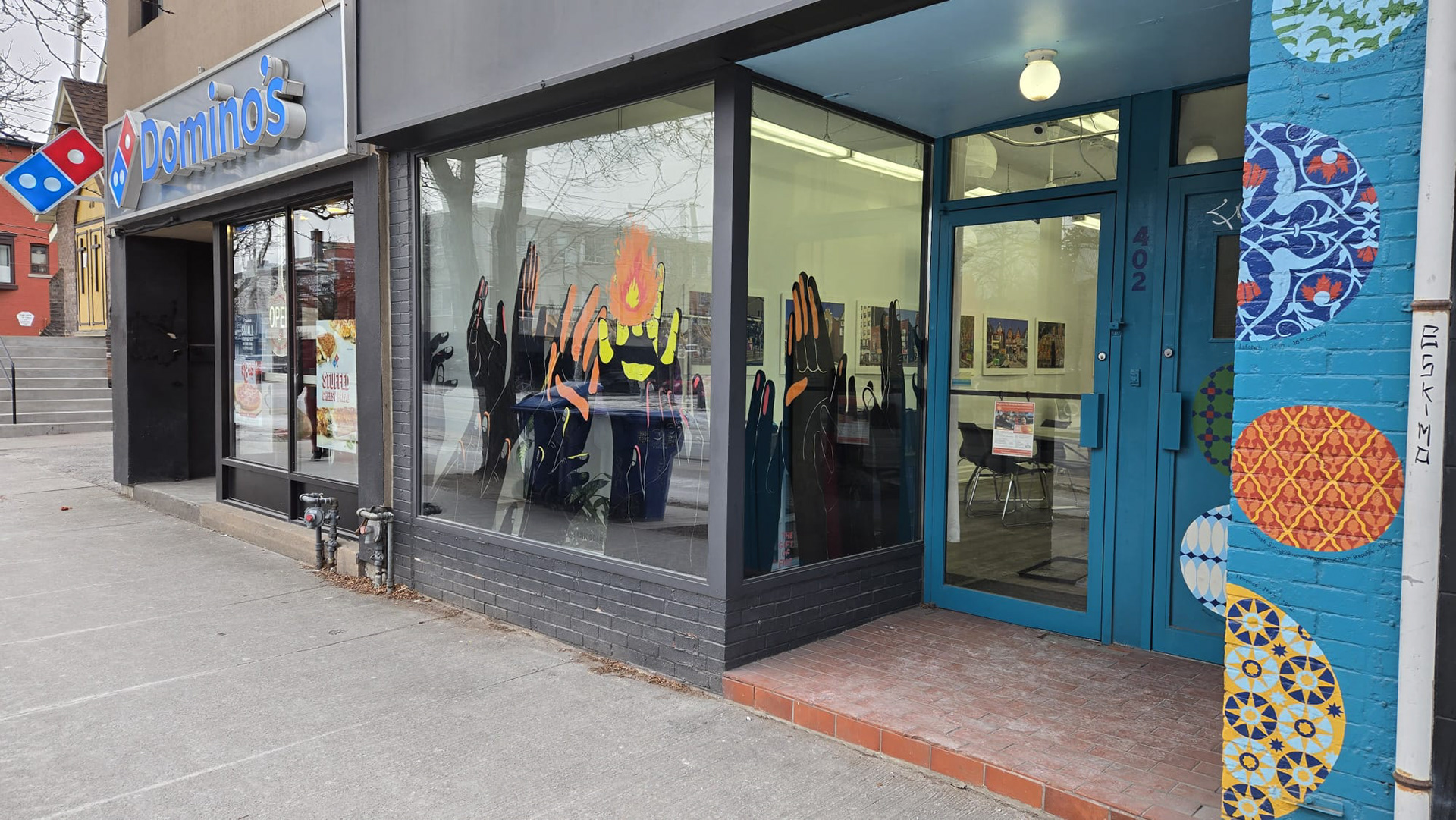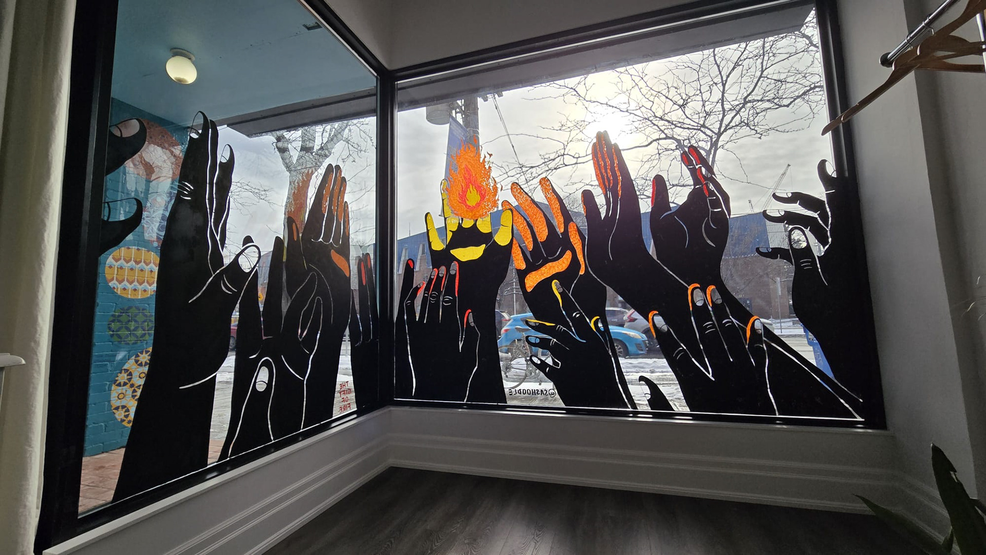 "The Gift of Fire" - A window mural made for "Makom" in January 2024, and still holds on until today (previously "Fentster" Gallery)