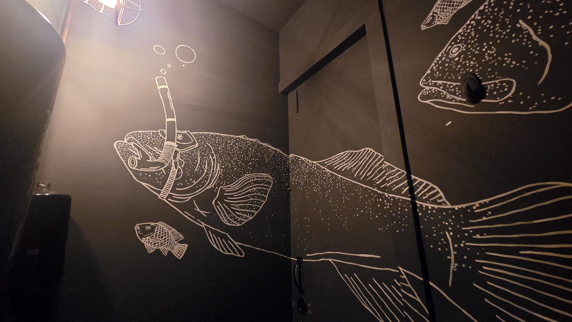 Illustrated signs for Amber Coffee and Kitchen washrooms