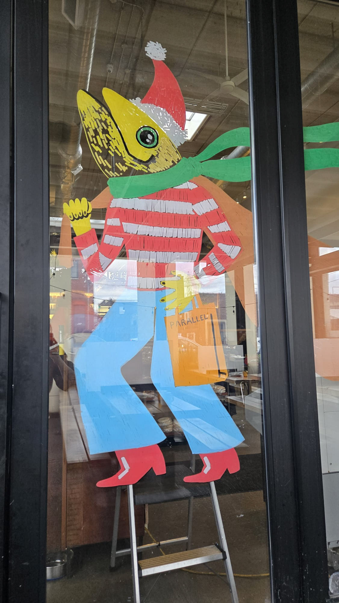 Little fun window drawings for Parallel Brothers made for Pride Month 2024, and Christmas